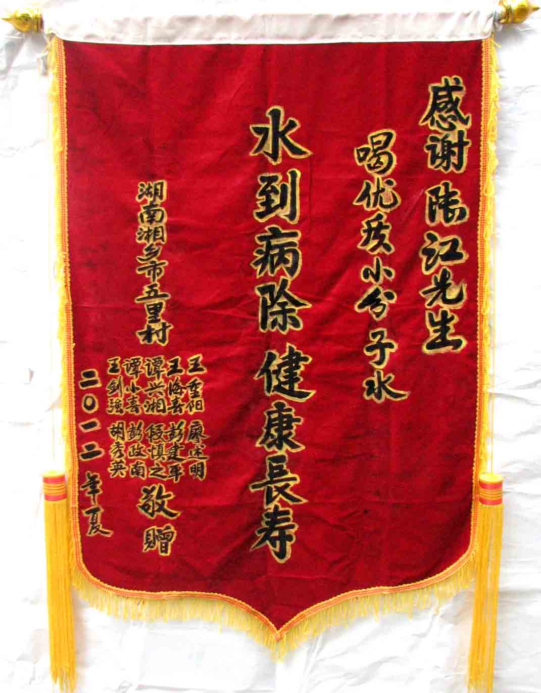 2015年潘志山主動寫一篇感想《我以親身實踐打破了冠心病、高血壓、糖尿病需終生服藥的神話》說堅持按發(fā)明人陸?江先生倡導的用已饑方食的方法合理膳食,我的健康狀況越來越好:糖尿病造成的視力下降有了明顯的恢復,末梢神經炎導致的指端潰爛現在完全痊愈,痔瘡自從飲用微小分子團水半年后就再也沒有復發(fā)過,氣滯血瘀造成的嘴唇暗紫也漸漸變得紅潤,舌下靜脈黑紫消失,足背的動脈由以前的隱約感到跳動現在變得清晰有力。[13]潘先生披露的訣竅,一是飲用微小分子團水給脫水細胞補水,二是已饑方食”養(yǎng)生智慧,患者都能做到。